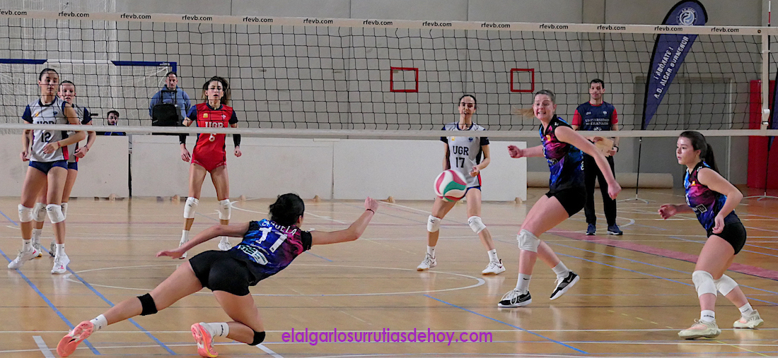 El equipo algareño de la Supeliga Femenina 2 de voleibol paga con una derrota en el Palacio de Deportes de Cartagena, donde no gana desde el 18 de octubre, un flojo partido frente al Universidad de Granada y sigue muy cerca de los puestos de descenso, con lo que el partido de este domingo ante Atarfe cobra aún más importancia. Debutó Isaieva Kseniia y resultó lesionada la líbero titular Belén Cabrera. El artículo incluye vídeo del partido