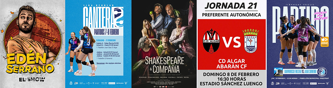 Un retrato tragicómico y mordaz de nuestra sociedad y el monólogo más salvaje, irreverente y divertido son las apuestas de este fin de semana en el teatro circo de El Algar con 'Shakespeare&Compañía' (entradas a 12 y 14 euros el sábado) y 'Eden Serrano: el show' (entradas a 12 y 15 euros el viernes), respectivamente.