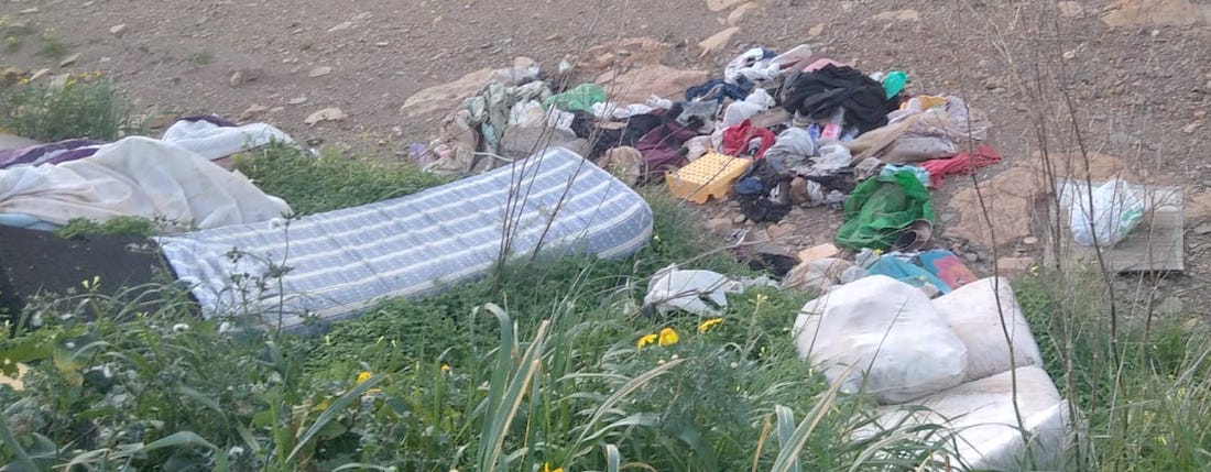 Situada junto al campo de fútbol del Sánchez Luengo de El Algar, está sirviendo como basurero por parte de aquellos que pierden la conciencia del mundo en el que viven. Las fotografías muestran la acumulación de basura en diversas zonas, incluidas las que dan a las paredes del recinto deportivo. Ropa, zapatos, colchones y toda clase de porquería que se mezclan con la maleza.