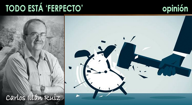 “Había pensado tocar en este artículo la ‘púa’ que me dejó la Autoridad Portuaria de más de seiscientos ‘aurelios‘, pero estoy comprobando en este inicio de 2026 que lo de retrasos en eventos festeros sigue siendo algo ‘normal’ en el sureste, por lo que otra vez vuelvo a escribir sobre este asunto, pues considero que la puntualidad es un respeto a los que han acudido a su hora y que no está justificado demorar el inicio (salvo por causa de fuerza mayor) más de diez minutos aunque no haya llegado la autoridad de turno o se esté esperando al mismísimo (don) Carlos Alcaraz.