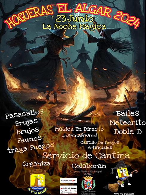 El Algar vuelve a ofrecer hoy, víspera de San Juan, una tarde-noche de conjuros, brujas, faunos y bailes, culminando con la hogareta en llamas. No será la única, pues, como se observa en la imagen adjunta, en Los Urrutias también habrá llamas.