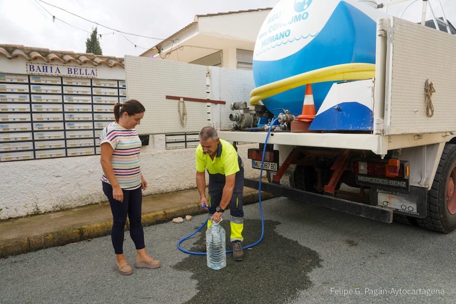 La Mancomunidad de Canales del Taibilla ha pedido no beber ni cocinar con el agua del suministro potable tras detectar infiltraciones de escorrentías en una de sus redes de distribución del Campo de Cartagena. La prohibición afecta a más de cien mil personas y las autoridades tratan de que la normalidad se recupere lo antes posible. Mientras, se están tomando medidas como llevar agua en cubas a lugares como Bahía Bella o habilitar el pabellón de El Algar para que los vecinos de Los Alcázares puedan ducharse.