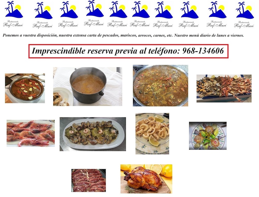 Ven y disfruta del restaurante de Los Urrutias, ya sea en la terraza como en el interior. La propuesta del establecimiento que dirigen los hermanos Charo y Juan Antonio García Ramón es muy amplia y variada, incluyendo a diario sabrosos y completos menús por sólo 11 euros que puedes disfrutar en el restaurante, en la terraza o llevar a casa. El teléfono para reservas es 968 13 46 06. Fuera de menú puedes pedirnos lo que quieras. ¿Te apetece una buena paella de mariscos o de bogavante o prefieres un arroz a banda, una mariscada o una buena parrillada? Apúntate.