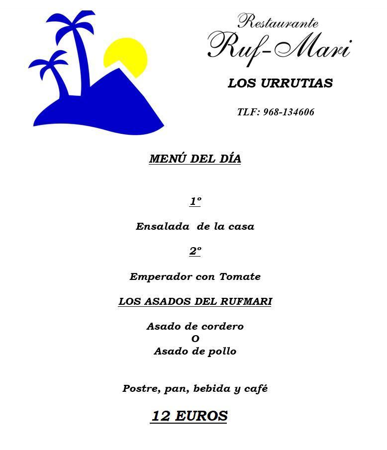 El restaurante que dirigen los hermanos Charo y Juan Antonio García Ramón en Los Urrutias informa que hoy y mañana abren también de 19 a 23 horas. Por otro lado, indicar que el menú de hoy (por sólo 12 euros) incluye ensalada de la casa, emperador con tomate y asada de cordero o de pollo, además de postre, pan, bebida y café.