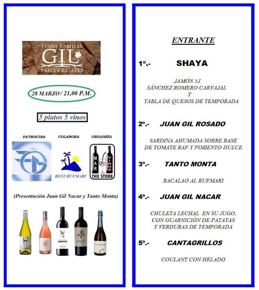 El viernes 28 de marzo, a partir de las 21 horas, hay una cita ver, catar y cenar con los nuevos vinos de la familia Juan Gil acompañando los manjares que saldrá de la prestigiosa cocina del restaurante Ruf-Mari. Además, habrá un cortador de jamón profesional. Déjate seducir por el arte de cortar y degustar el mejor jamón 5J de Sanchez Romero Carvajal.