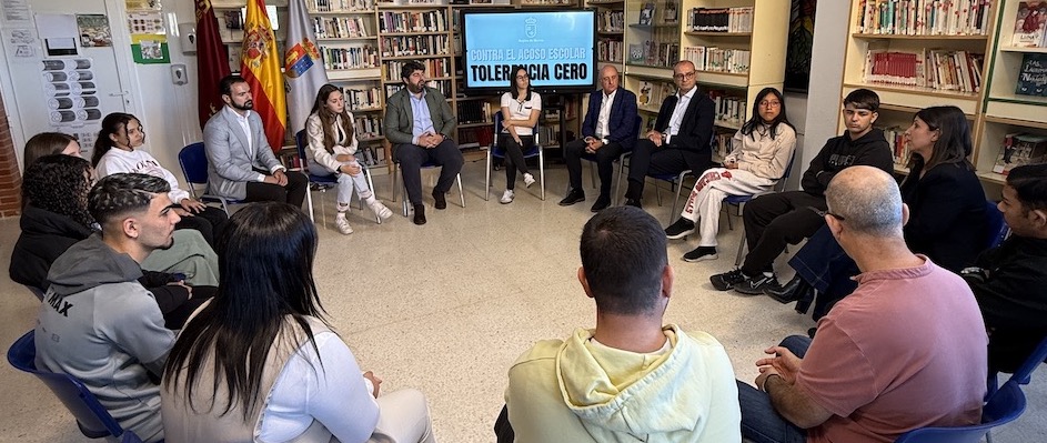 El presidente del gobierno autonómico, Fernando López Miras, ha anunciado esta mañana, en el IES Sierra Minera de La Unión, el objetivo de “tolerancia cero frente al acoso escolar”, para lo que saldrá un nuevo decreto basado en el respeto y la seguridad, que potenciará la autoridad del profesorado, ampliará las normas de convivencia a comedores y transporte escolar y endurecerá las sanciones frente a conductas contrarias al respeto y la disciplina.