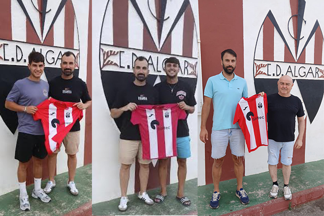 El equipo rojiblanco de preferente autonómica de fútbol ha fichado a Aless y ha renovado a Azor y Chiqui. En las fotos adjuntas posan con el entrenador y con el presidente del club.