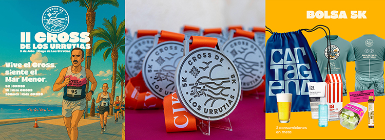 La organización de la segunda edición de la carrera popular de Los Urrutias, que tendrá lugar el sábado 5 de julio, hace públicos los recorridos, destacando que irán, en gran parte, junto al Mar Menor. En las fotos adjuntas se observan el cartel, las medallas que se entregarán y el contenido de la bolsa para los participantes en la prueba de 5 kilómetros