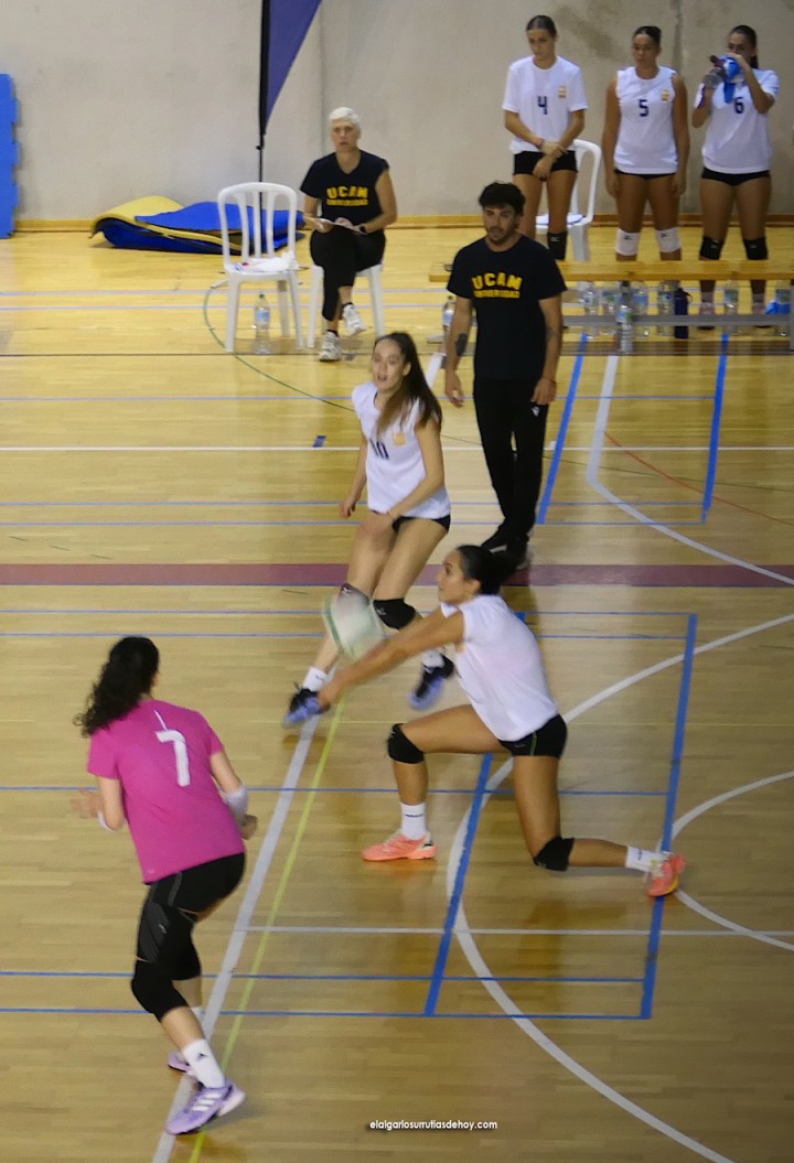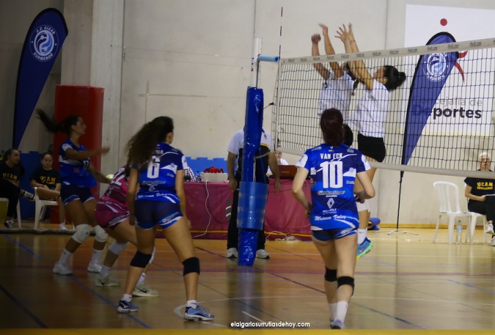 De manera similar comenzó el tercero, pues de un 3-0 se pasó al 8-7. Otra vez apretaron las jugadoras que entrena Mariano Riganti y varias veces se pusieron los 5 puntos de distancia (14-9), pero las rivales que prepara Alba Hernández no se rendían y seguían al acecho (15-12). El despegue definitivo llegó con Cristina Baum poniendo el balón en juego. La potencia de su remate quedó plasmada en dos puntos seguidos de saque directo. El marcador se puso en 20-12 y, aunque volvió a recortad el rival (21-17), ya se estaba en plena cuenta atrás hacia la victoria de la AD Algar Surmenor.