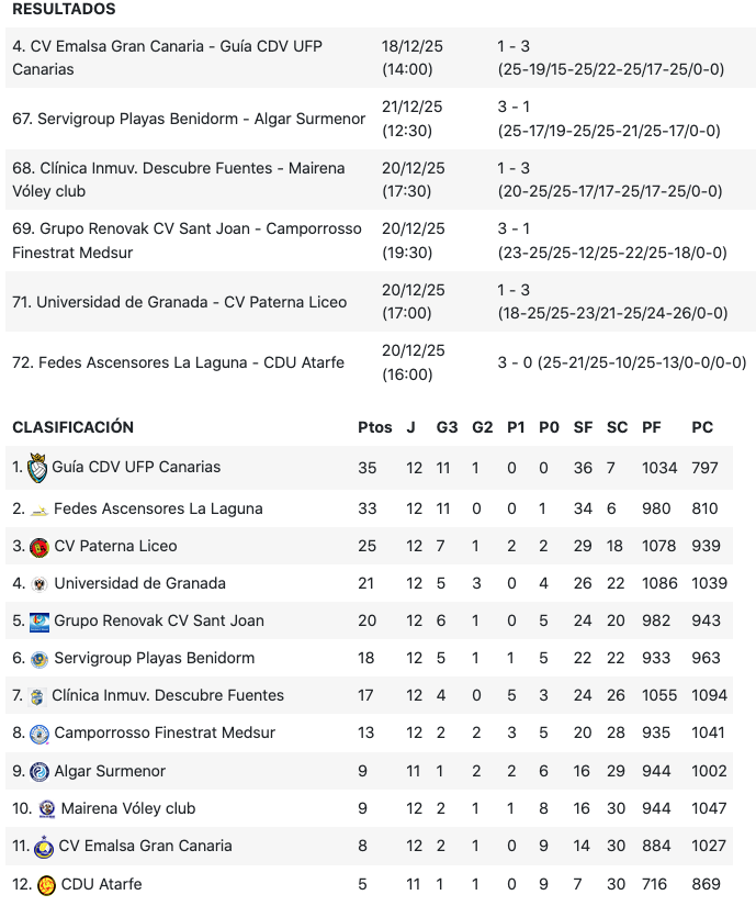 AD Algar Surmenor no ha podido obsequiarse una victoria en su último partido de 2025 al perder en el importante partido disputado en la pista del Playas de Benidorm, con lo que se marcha de vacaciones con la amenaza de los puestos de descenso. El conjunto que entrena Riganti llegó con opciones a los finales de los dos últimos set, pero se vino abajo en esos tramos decisivos.