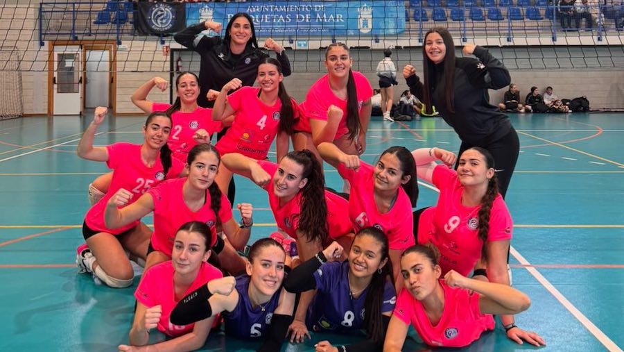 El equipo de la Superliga Femenina 2 no se estrenará en partido oficial en 2026 hasta el sábado 17 frente a La Laguna, que ocupa el segundo puesto de la clasificación, mientras que en las bases sólo parte entran en competición este fin de semana. En la foto, el equipo cadete, que ha disputado durante el paréntesis navideño la Copa de España en Almería, mientras que las alevines han disputado en casa el torneo José Saura Vivancos.