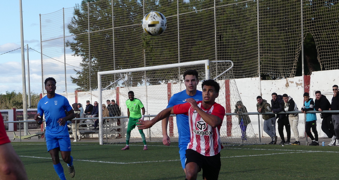 El CD Algar 'pincha' al empatar en casa ante un Abarán muy sólido en defensa y sólo ha sumado uno punto de sus últimos tres partidos. El equipo de Álvaro Celdrán sufrió la expulsión de su portero, Juan Eduardo, en los minutos finales de partido, teniendo que ser el jugador de campo Nasta quien ejerció de cancerbero hasta el final. En la foto, una intervención que efectuó en su improvisado papel