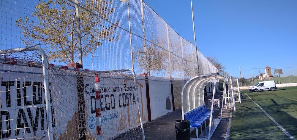 Han comenzado las obras en el perímetro del campo de fútbol de El Algar con la instalación de unos ciento veinte metros lineales, aproximadamente, de redes para evitar que los balones salgan al exterior. También se han arreglado las porterías y, próximamente, se acometerá la reposición del levantamiento del césped y su nueva instalación.