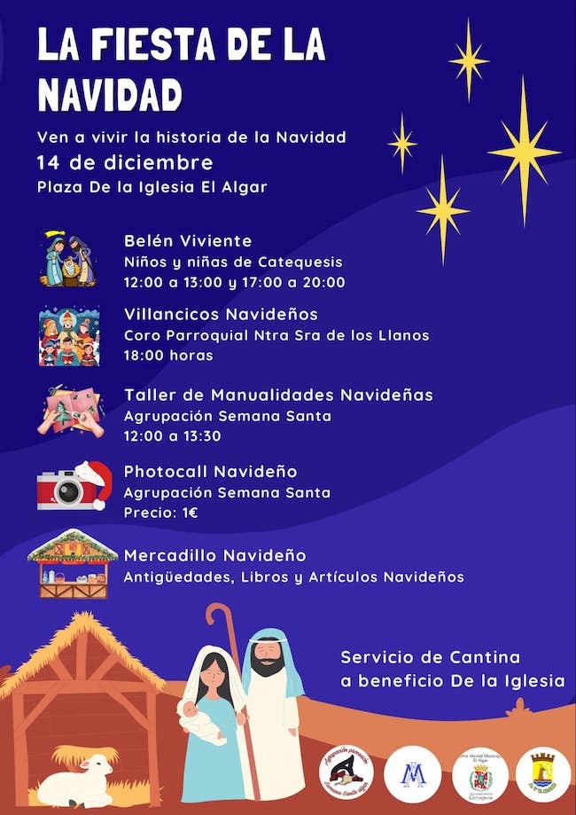 Tendrá lugar en la plaza de la iglesia de El Algar durante la mañana y la tarde, con doble presencia de un Belén viviente, además del canto de villancicos, un taller de manualidades, un mercadillo y un 'Photocall'.