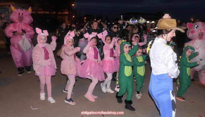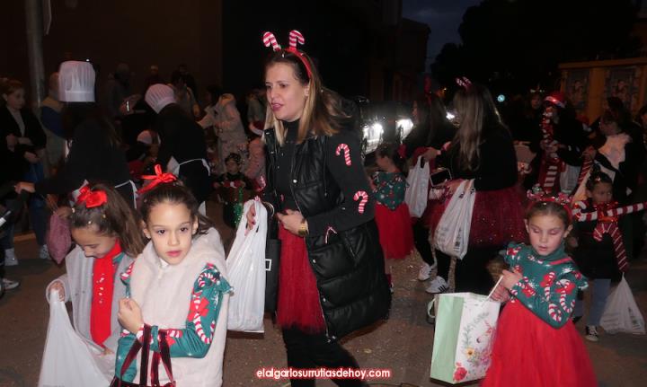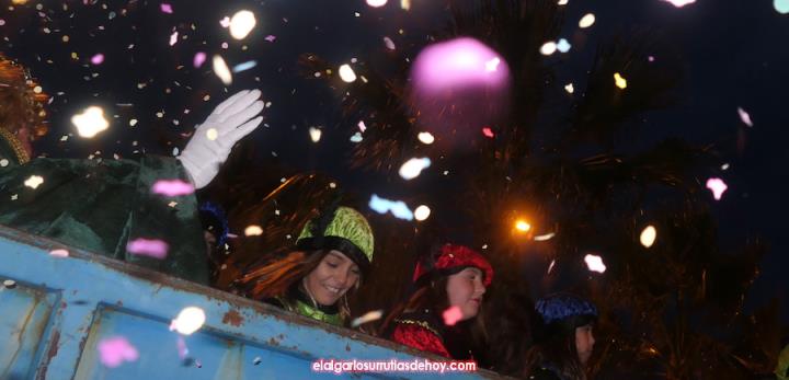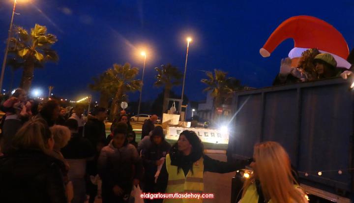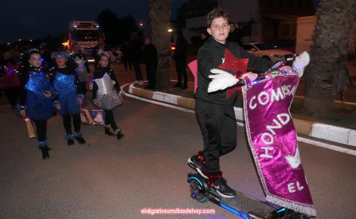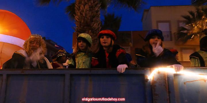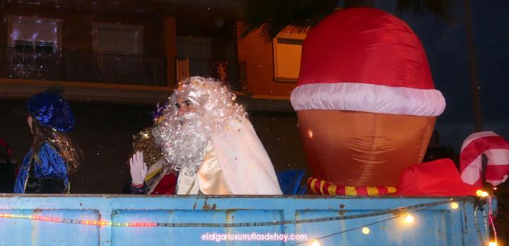 El gran vehículo ha sido el que ha llevado el remolque desde el que los Reyes Magos han lanzado los caramelos y regalos, dentro de un comitiva de variados disfraces y que plantó cara al viento frío que acompañó la marcha.