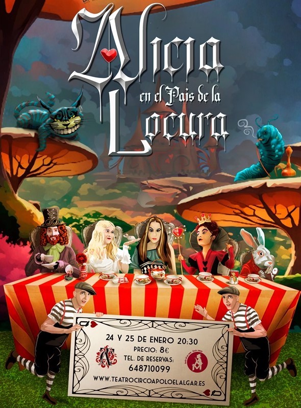 Una versión superdivertida de la fantasiosa novela escrita por el británico Charles Lutwidge Dodgson, estará sobre el escenario del teatro circo de El Algar los próximos viernes y sábado de esta semana a cargo de la compañia de 'Los duendes del Mar Menor'. Entradas a 8 euros.