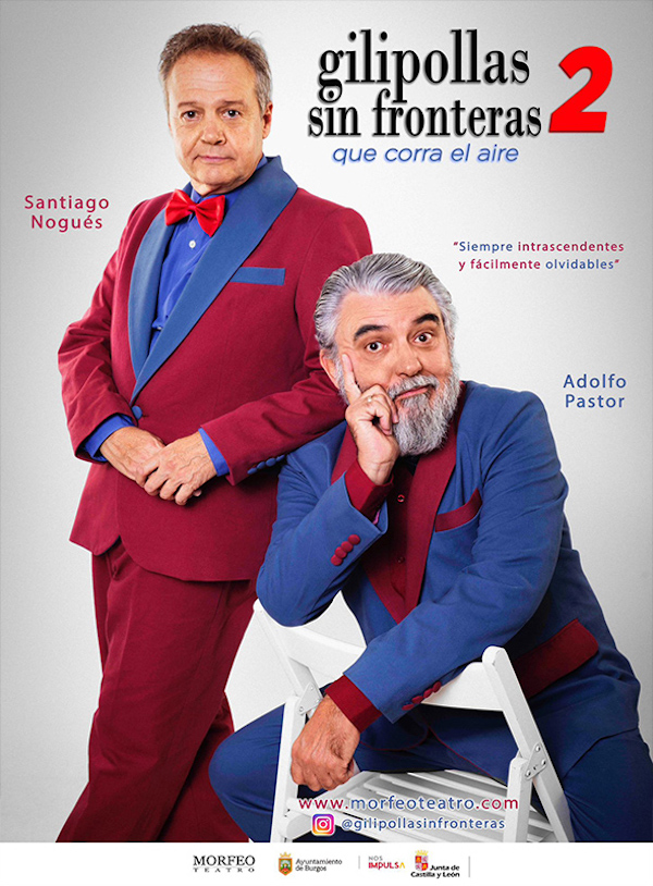 Tras 25 años de trayectoria con 'Gilipollas sin fronteras', Adolfo Pastor y Santiago Nogués han decidido, al fin, crear un nuevo espectáculo al que -en un alarde de imaginación- han dado en llamar 'Gilipollas sin fronteras 2. Que corra el aire'. Estarán en el Teatro Apolo de El Algar el próximo viernes.