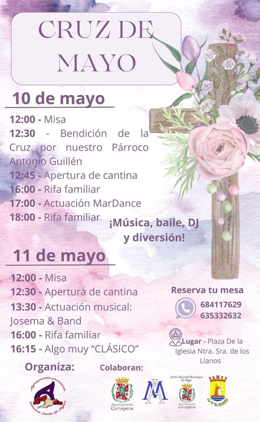 La iniciativa estrenada el pasado año frente a la fachada de la parroquia de Nuestra Señora de los Llanos por la 'Agrupación de la Semana Santa de El Algar' fija para su celebración este año el fin de semana del 10 y 11 de mayo con una programación que incluye música en directo, baile, cantina y misa, entre otras propuestas.