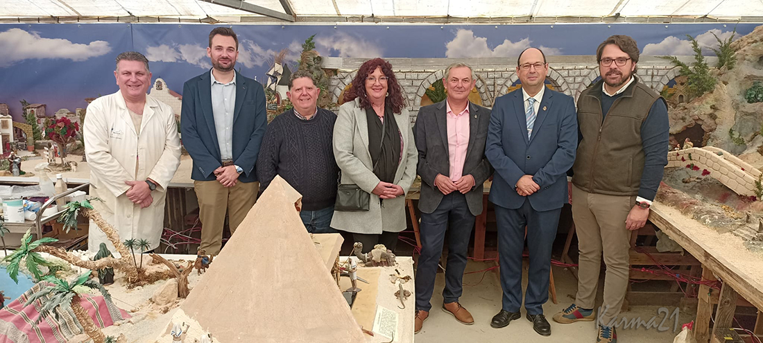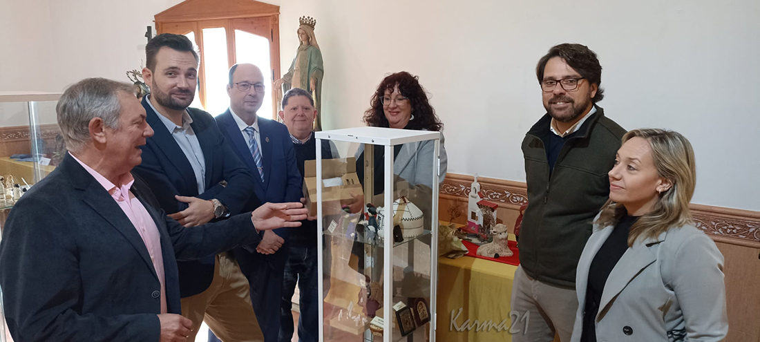 El Museo de Belenes del Mundo de Ojós, municipio con unos seiscientos vecinos, cuenta con 570 nacimientos y miles de figuras belenísticas. La exposición itinerante de La Aparecida puede verse hasta que termine la Navidad, coincidiendo con el gran belén a la asociación 'El buen pastor' que se inaugurará este sábado próximo por la mañana. En las fotos se observan al presidente de la Junta Municipal de El Algar y compañeros de la delegación algareña con el concejal Álvaro Valdés y una representación del colectivo aparecidense (Antonio, Paco y Juan Manuel), además de José Emilio Palazón y Olga Jiménez, conservadora del Museo de Ojós.