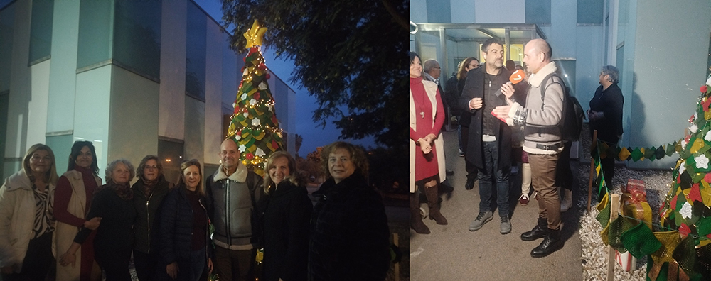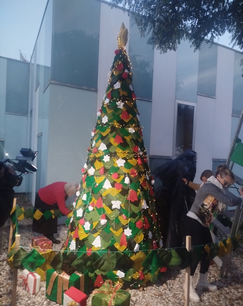 El árbol elaborado por la asociación de amas de casa de El Algar ha sido instalado esta semana en el jardín del local social multiusos, en un acto que contó con la bendición del párroco, Antonio Guillén Campillo, y la asistencia de la edil algareña Paqui Martínez Sotomayor, además de una conexión en directo de la televisión autonómica La7RM.