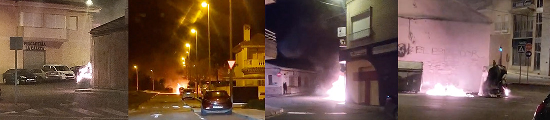 El fuego continúa estando presente en las noches de El Algar por la actuación de vándalos prendiendo fuego a depósitos de basura. Esta vez estaban situados frente a la oficina de la OMITA, en el camino del instituto y, nuevamente, en el entorno del taller de 'El Pelao'.