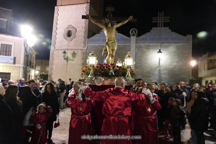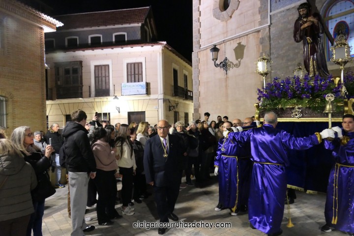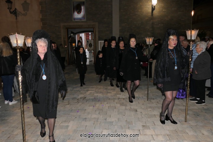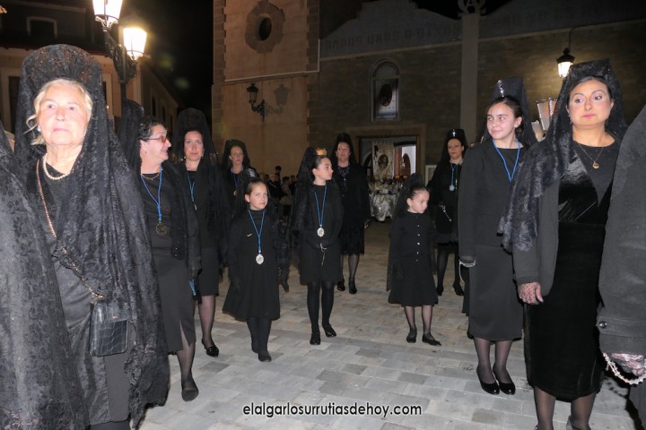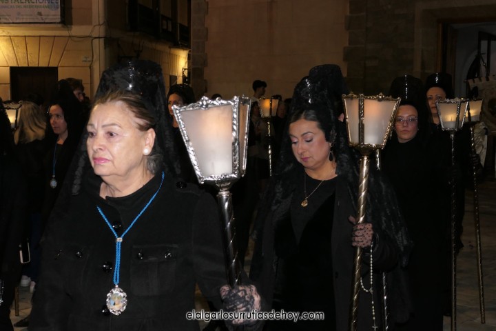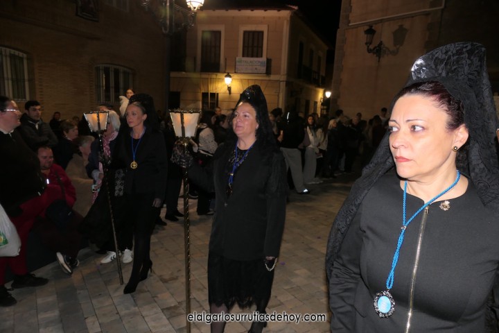 El Algar ofreció la solemne 'Procesión del silencio' con un nuevo recorrido que acabó con las imágenes de Jesús, una llevando la cruz y otra ya crucificado, entrando por calles distintas hacia la fachada de la iglesia, al igual que hizo la Virgen, en un final nuevo para expresar un dolor por la muerte de Jesucristo que este año tiene licencia para la esperanza.