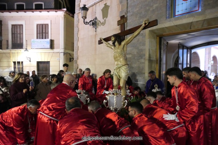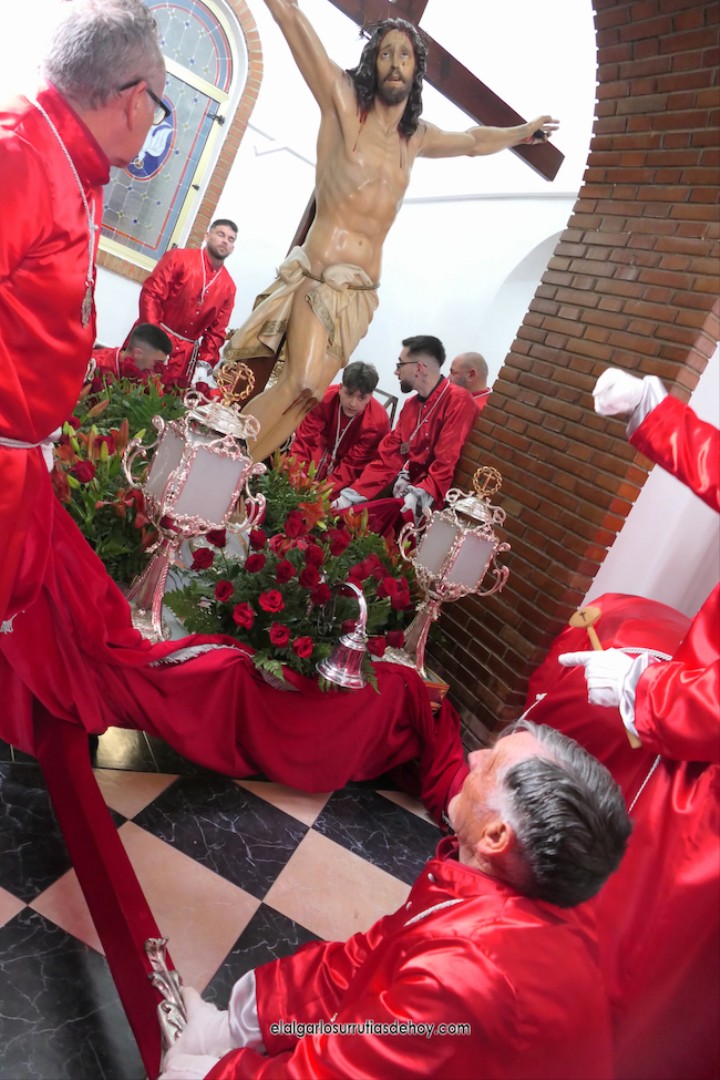La 'Procesión del silencio' de El Algar está en plena etapa de mejoras constantes. Tras la pandemia, regresaron las 'manolas', se estrenaron las túnicas de los costaleros y se ha restaurado el Cristo. Este año la gran novedad está en que Jesús murió anoche, pero en El Algar ya hay esperanza de verlo resucitado por las calles de El Algar con la novedosa procesión que se estrenará el domingo.
