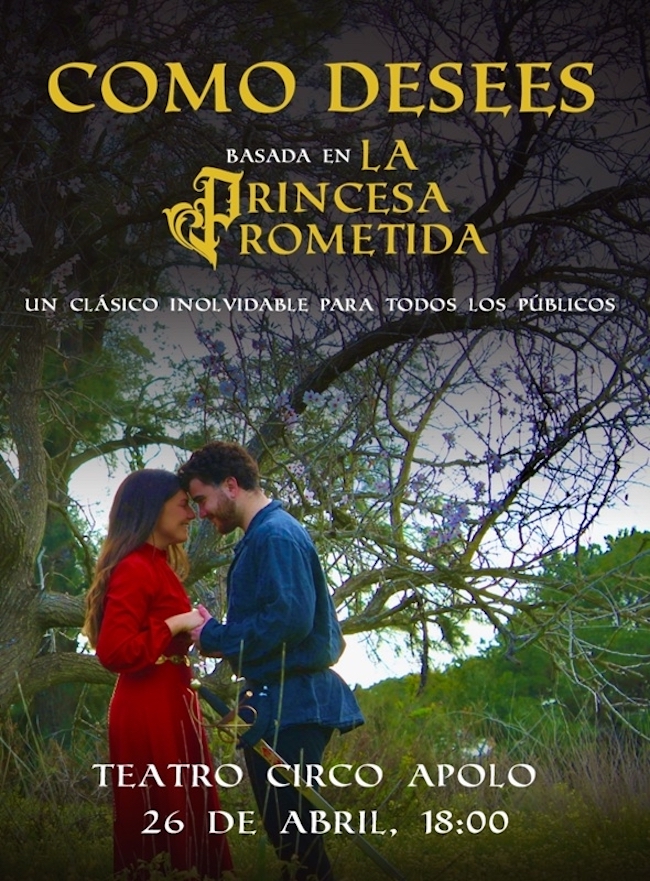 Teatro Circo Apolo ofrece este domingo la obra ‘Como desees’, una versión del clásico de ‘La princesa prometida’, que pondrán en escenas los jóvenes de las parroquias de La Unión (Nuestra Señora de los Dolores y Nuestra Señora del Rosario) para costearse la peregrinación que llevarán a cabo este año. Las entradas cuestan 10 euros para los mayores de 13 años y 5 para los que tienen entre 3 y 12 años.