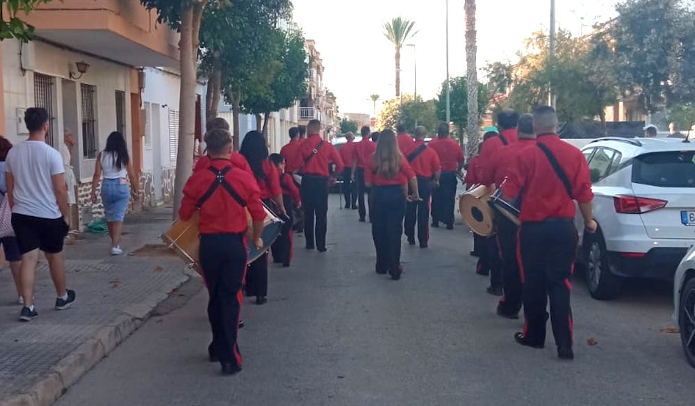 A las ocho de la mañana ha comenzado a recorrer el pueblo la banda de cornetas y tambores para anunciar que es el día de Nuestra Señora de Carmen, el día de la patrona.