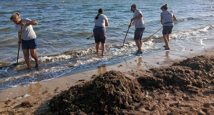 El operativo desplegado por la Consejería de Medio Ambiente, Universidades, Investigación y Mar Menor, a través de la Dirección General del Mar Menor, ha retirado un total de 4.246,27 toneladas de biomasa del litoral del Mar Menor entre enero y julio de este año.