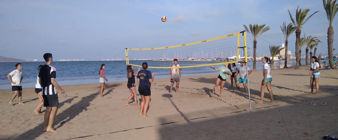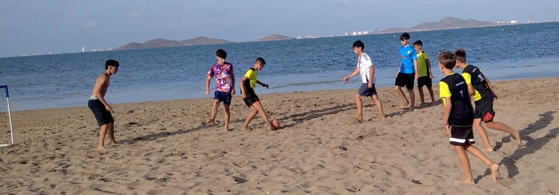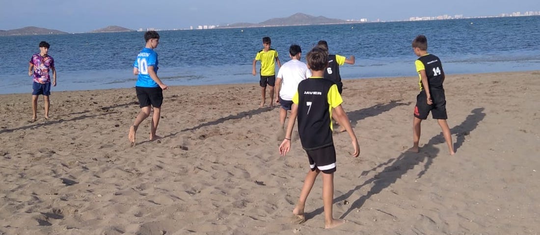 El verano traslada a las playas los terrenos de juego habituales en el mundo del deporte y ayer tarde Los Urrutias fue el marco donde se desarrollaron encuentro entre jóvenes de fútbol y voley playa.