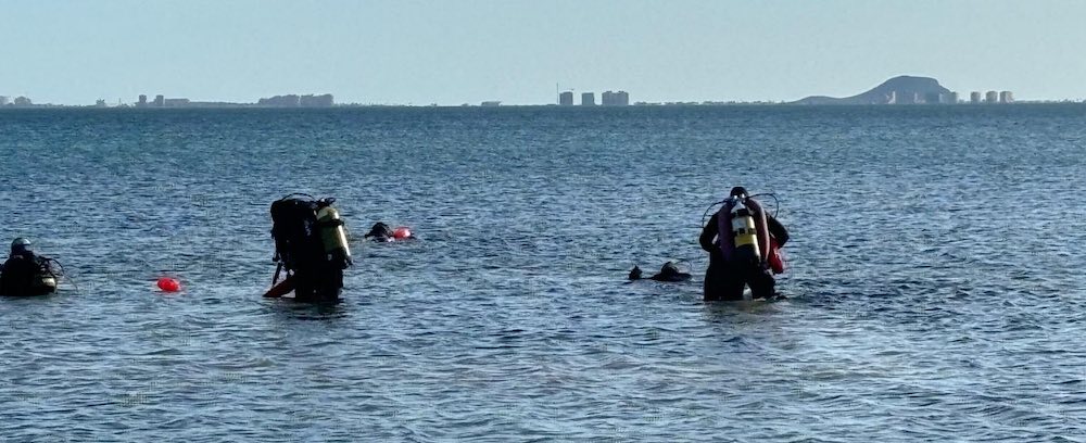 Más de un centenar de voluntarios acudieron al llamamiento de limpiar el fondo marino y la playa de Bahía Bella ubicada en la desembocadura de la rambla del Albujón, entre los municipios de Cartagena y de Los Alcázares.