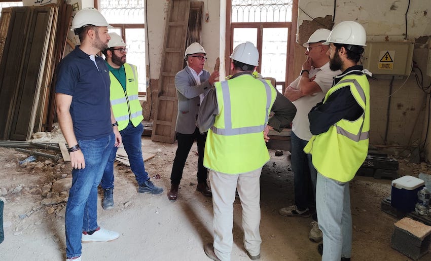Una representación de la Junta Vecinal Municipal y de la Asociación de Vecinos de El Algar, han estado hoy, junto a técnicos municipales, en el emblemático edificio con la empresa constructora en el inicio de los trabajos. El tiempo de ejecución fijado es de 14 meses.