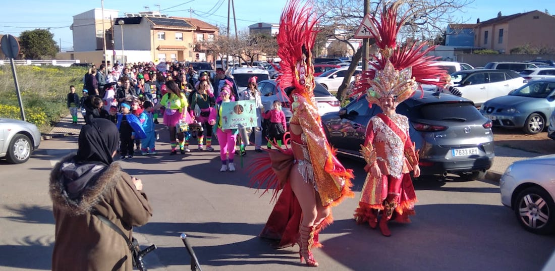 El colegio de San Isidoro de El Algar ha celebrado en esta soleada mañana el desfile de carnaval por las calles del pueblo, ofreciendo una colorida variedad de disfraces y estando encabezada la marcha por dos integrantes de la comparsa Salgueiro.