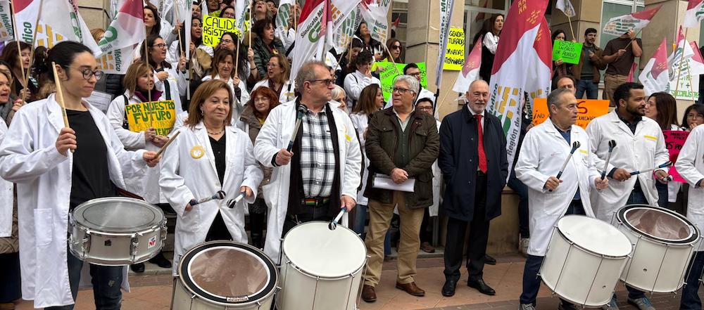 La semana de paro de los facultativos en la Región de Murcia comenzó ayer con una protesta frente a la Consejería de Salud y un seguimiento del 51% en atención primaria y del 68% en hospitales, según datos del Sindicato Médico, desde donde también se felicitan de conseguir que el TSJRM haya rebajado los servicios mínimos para esta semana. Por contra, desde la consejería se indica que el seguimiento es del 15%.