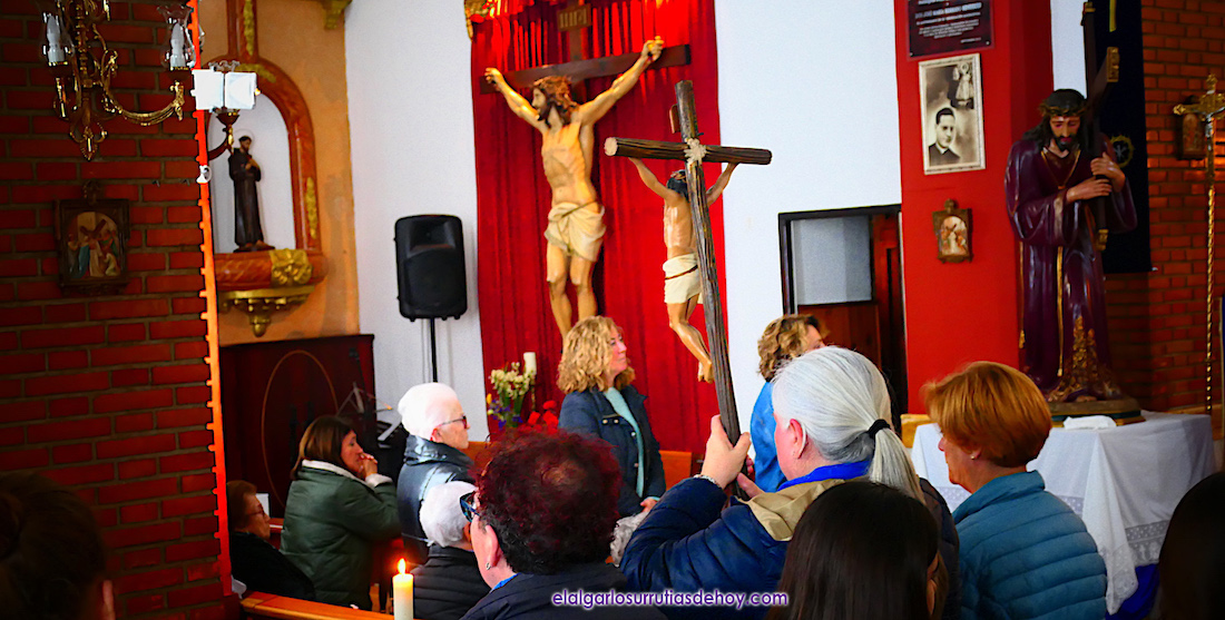 Escenas del 'vía crucis' celebrado en la tarde-noche del viernes por las 14 estaciones marcadas en el interior de la iglesia de Nuestra Señora de los Llanos de El Algar.