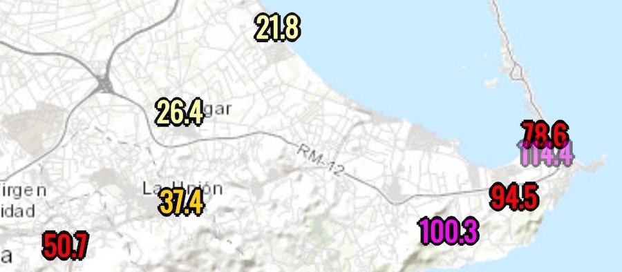 Escrito por AU12Ametse (Asociación Meteorológica del Sureste) ha publicado los datos de la estaciones climáticas de la Región de Murcia, onde se refleja que han caído 26,4 litros de agua por metros cuadrado en El Algar y 21,8 en Los Urrutias..
