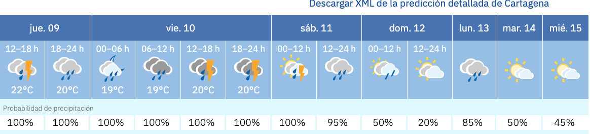 El gobierno de la Región de Murcia, ante la alerta roja activada por la Agencia Estatal de Meteorología (cuadro adjunto de la previsión para La Unión) para este 10 de octubre, ha acordado suspender la actividad en los centros de educación y sociales de los municipios de Cartagena, San Javier, San Pedro del Pinatar, La Unión, Los Alcázares, Torre Pacheco, Fuente Álamo, Mazarrón y las pedanías murcianas de Lobosillo, Sucina, Gea y Truyols, Avileses y La Tercia.