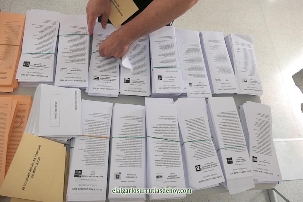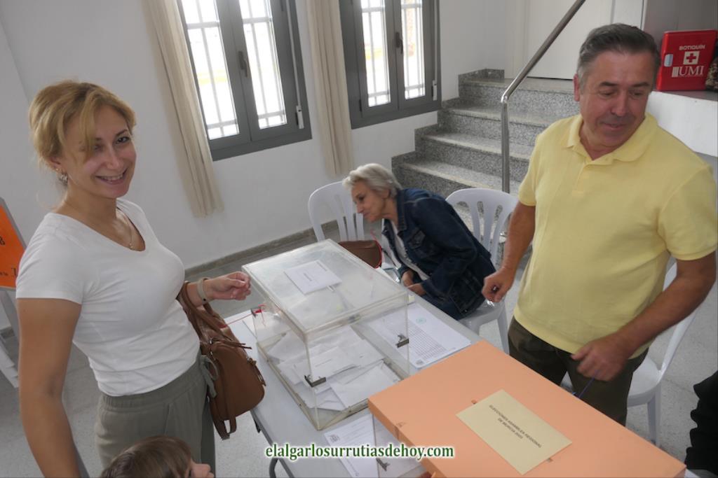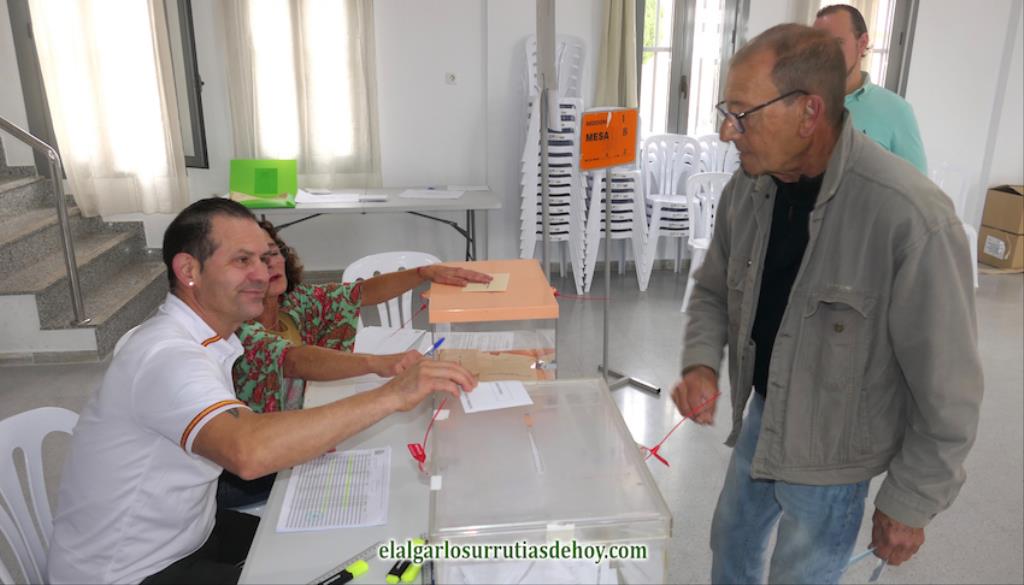 La Región de Murcia ha registrado hasta las 14 horas una participación del 40,09% (424.665 personas), que supera el 35,19% (372.348) de hace cuatro años. En las imágenes adjuntas, vecinos votando en El Algar y en Los Urrutias esta mañana. GALERÍA DE FOTOS (pinchar aquí)