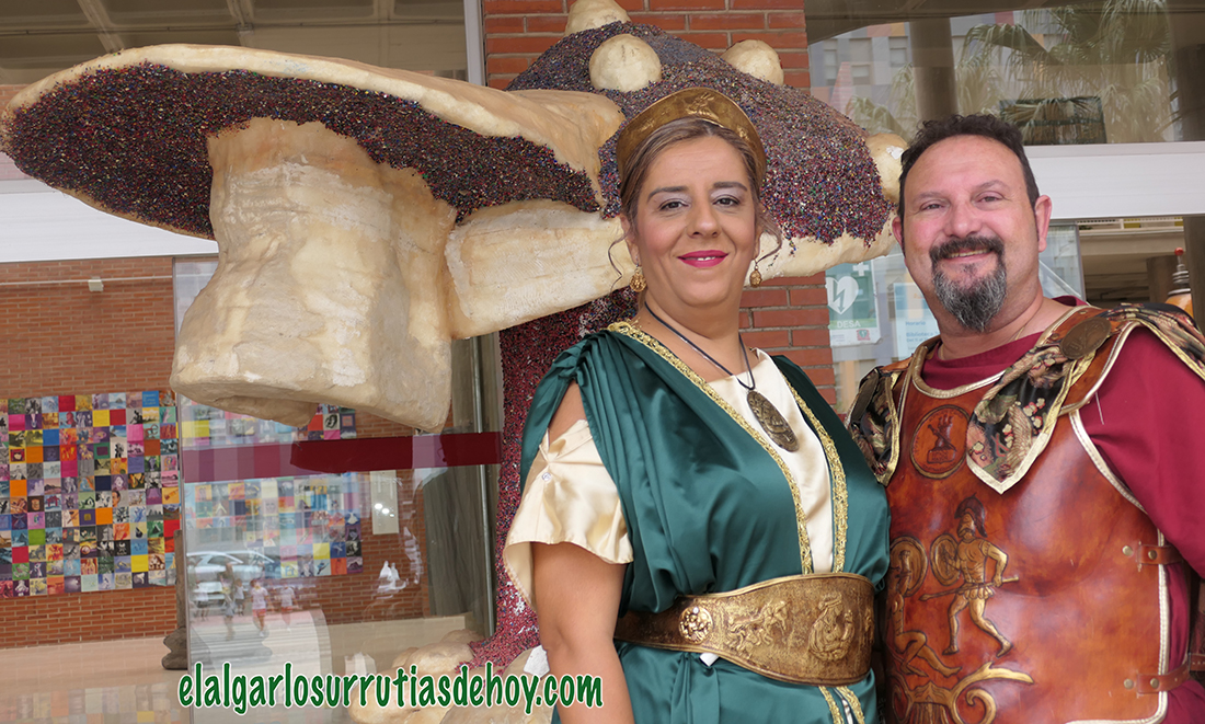 * María Montserrat y Javier Agudo, vecinos de El Algar, están en su segundo año encarnando a Emilia Paula y Escipión en las fiestas de Carthagineses y Romanos, que se celebran en la ciudad portuaria hasta el domingo y cuya mayor información de su actividad se puede ver y leer en www.cartagenadehoy.com - Hoy, ambos serán los protagonistas de la obra 'Comicios Centuriados', que estrena guión y ha levantado gran expectación. Se puede ver en el puerto a partir de las 20.15 horas con entrada gratuita.