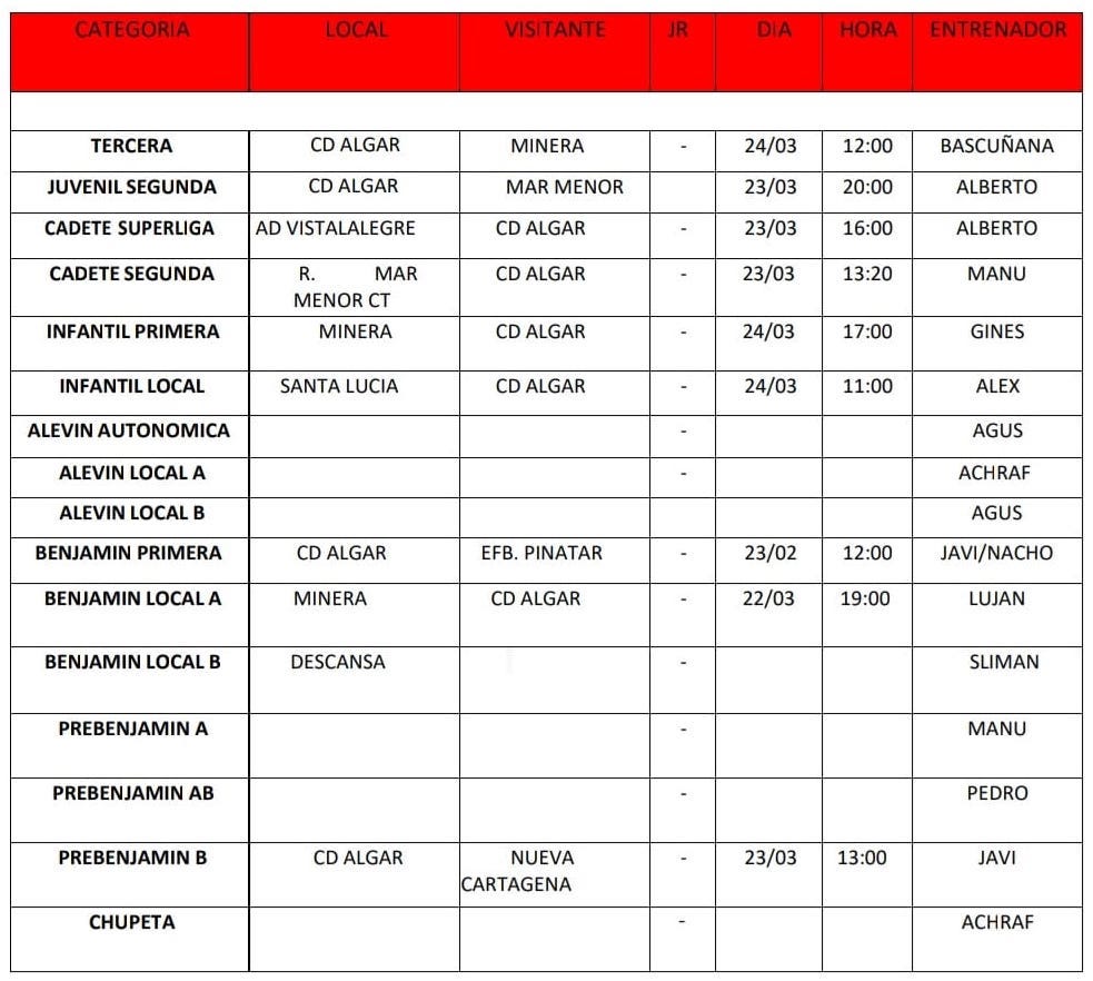 Hoy ha comenzado la décimo segunda edición de la 'Ruta de la tapa' de Los Urrutias. Por otro lado, El Algar acoge esta noche un Vía Crucis y el Domingo de Ramos celebrará la procesión de las palmas con la burrica. En el deporte, último partido de la liga regular como local del FC Cartagena-Surmenor en el pabellón algarense en la tarde del sábado. También juega como local el CD Algar de fútbol, siendo el rival el líder indiscutible de la Tercera RFEF este domingo.