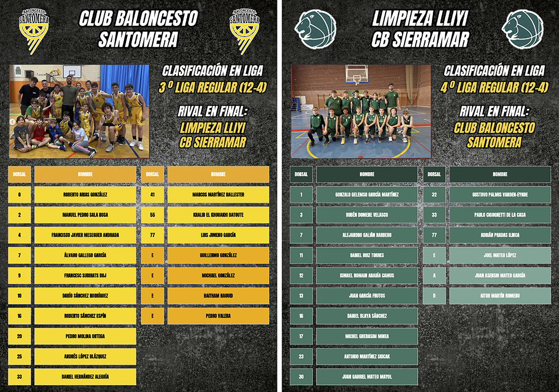 Viernes, 19.30 horas. Final regional de categoría preinfantil masculina en el pabellón de Santomera entre el equipo local y el CB Sierramar.