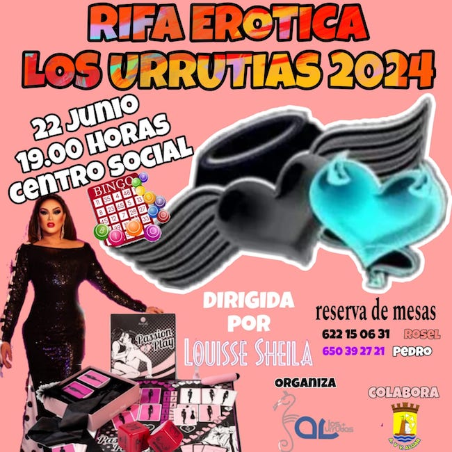 Lo más próximo es la rifa erótico de Los Urrutias del día 22 de junio, para al día siguiente tener lugar en El Algar la noche mágica de las hogueras de San Juan con brujas, faunas, trafuegos, etc. En cuanto a las fiestas de Los Urrutias, la asociación de vecinos avanza que el carnaval será el 20 de julio, noche que tendrá la actuación de 'Alta tensión', siendo otros artistas que pasarán por el escenario 'Los vecinos del cuarto' (12 de julio), 'Los luceros' (31 de julio), 'El sitio de mi garaje' (16 de agosto), entre otros. Antes, el 6 de julio se estrenará el cross urrutiense, siendo 'Marlene' la banda que pondrá música a la fiesta que habrá tras las carreras.