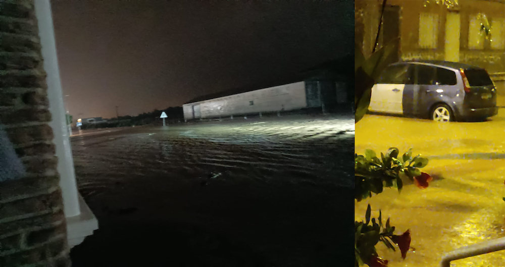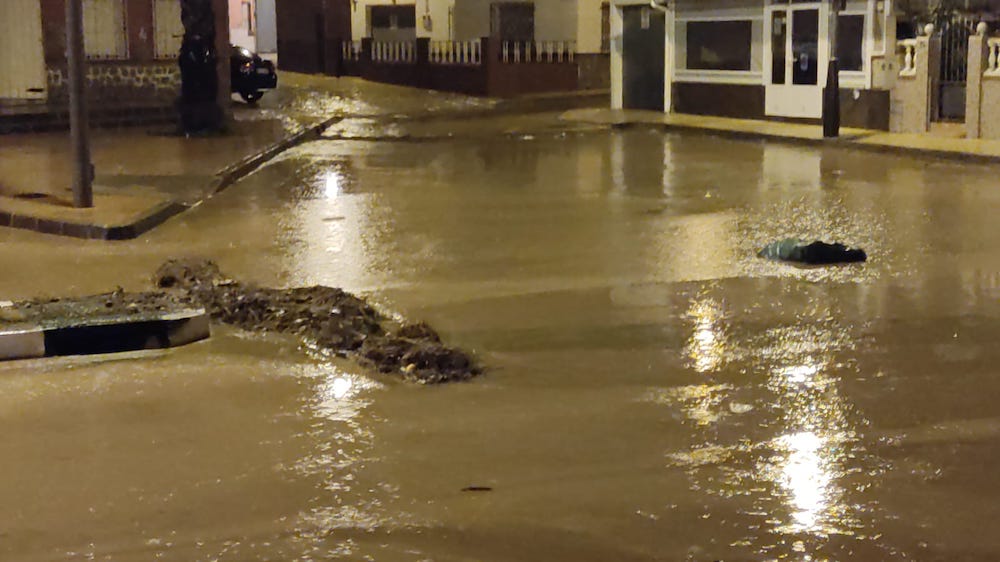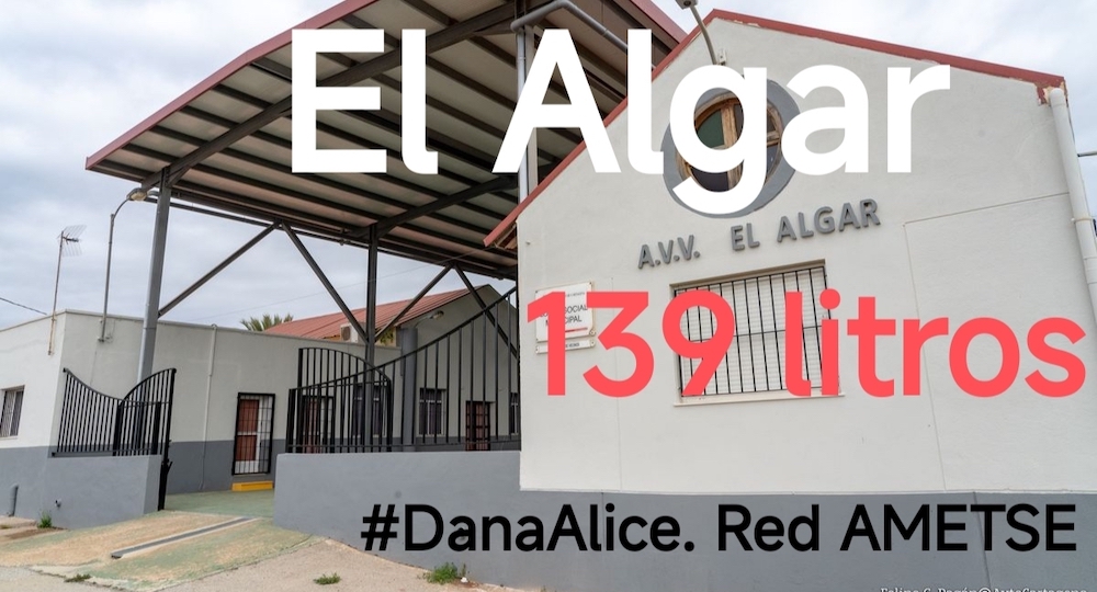 El Algar ha registrado esta pasada madrugada 139 litros de lluvia por metro cuadrado (datos de Ametse), a lo que se ha unido el agua procedente de la sierra minera, convirtiendo varias zonas, como la plaza del Hondo, en intransitables. Ha tenido lugar desde pasadas la una y media y hasta poco antes de las tres, estando acompañada por sonoros truenos y rayos, como puede observarse en dos de las fotos del montaje elaborado con escenas de Juan Urrea Martínez y 'Desi Grypdobled'. Destacar que la comarca ha sufrido inundaciones, siendo San Javier la que más agua ha recibido. La Unidad Militar de Emergencias fue avisada ante el riesgo de desbordamiento de la rambla de Los Alcázares, siendo anulada más tarde la petición.