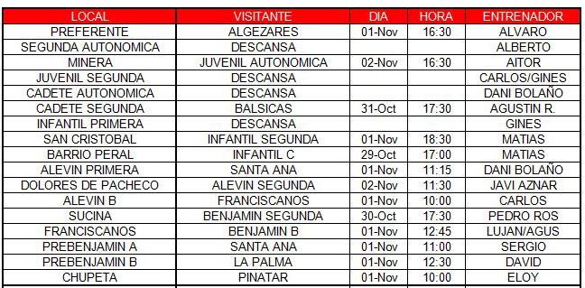 De los partidos de los equipos de cantera en ligas autonómicas federadas sólo compiten este fin de semana las secciones infantil y cadete A en Santomera el domingo a las 10 y 12 horas
