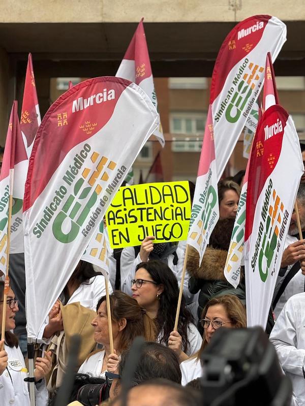 La profesión médica de la Región de Murcia inició ayer la primera semana de huelga nacional médica y facultativa. Se trata del primer paro del año, al que preceden tres convocatorias (jornadas del 13 de junio, 3 de octubre y del 9 al 12 de diciembre de 2025) y al que seguirán huelgas semanales cada mes hasta junio tanto en el ámbito de la sanidad autonómica como contra el Ministerio de Sanidad.