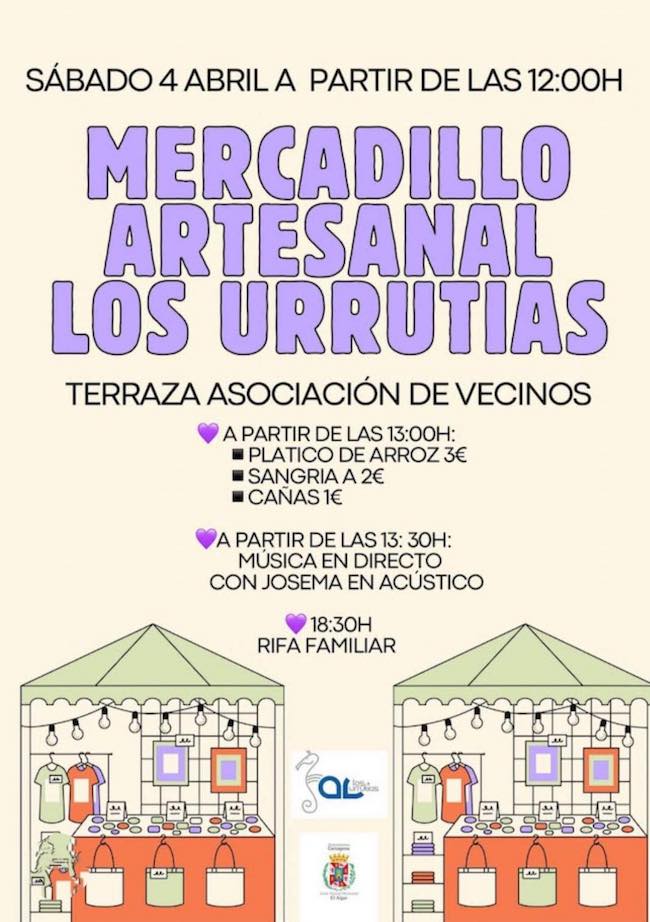 Dos propuestas sobresalen este fin de semana en los pueblos de nuestro área de influencia. La primera cita son los puestos de artesanos que se instalarán en Los Urrutias durante la jornada de hoy, aderezados, entre otros alicientes, por la música en directo. El otro evento es para el domingo con el estreno de la procesión de Jesús Resucitado por las calles de El Algar, en un matinal con misa de campaña y un singular encuentro final con la Virgen. También habrá misa en Los Urrutias