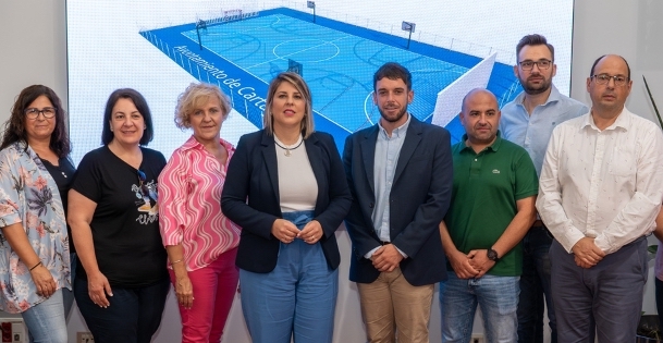 La alcaldesa (en la foto con presidentes de las juntas vecinales municipales) anuncia que la inversión se llevará a cabo durante la presente legislatura, abarcando a todas las existentes en el municipio. Las pistas contarán con un diseño propio para contribuir también a afianzar la 'Marca Cartagena' unida al deporte.