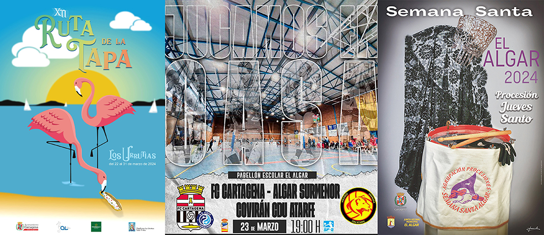 Hoy ha comenzado la décimo segunda edición de la 'Ruta de la tapa' de Los Urrutias. Por otro lado, El Algar acoge esta noche un Vía Crucis y el Domingo de Ramos celebrará la procesión de las palmas con la burrica. En el deporte, último partido de la liga regular como local del FC Cartagena-Surmenor en el pabellón algarense en la tarde del sábado. También juega como local el CD Algar de fútbol, siendo el rival el líder indiscutible de la Tercera RFEF este domingo.