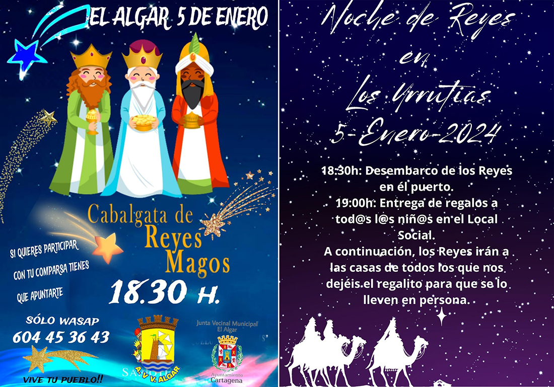 Melchor, Gaspar y Baltasar se multiplicarán el 5 de enero, pues estarán en la cabalgata que comenzará en El Algar a las 18.30 horas y también en el desembarco en el puerto de Los Urrutias a las 19 horas.